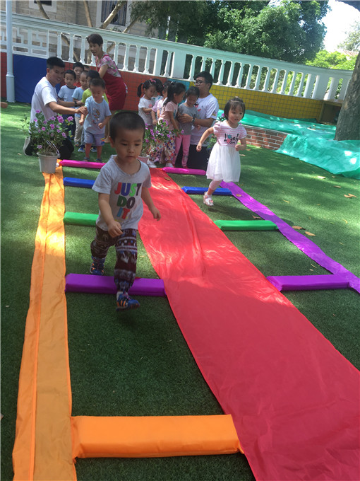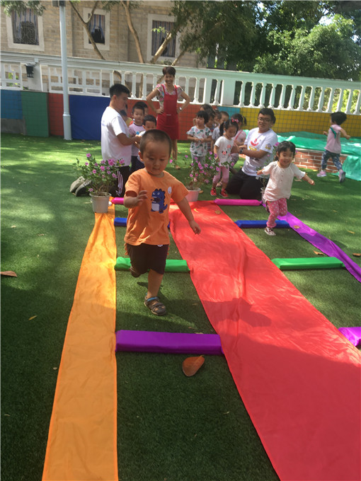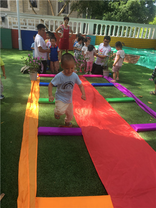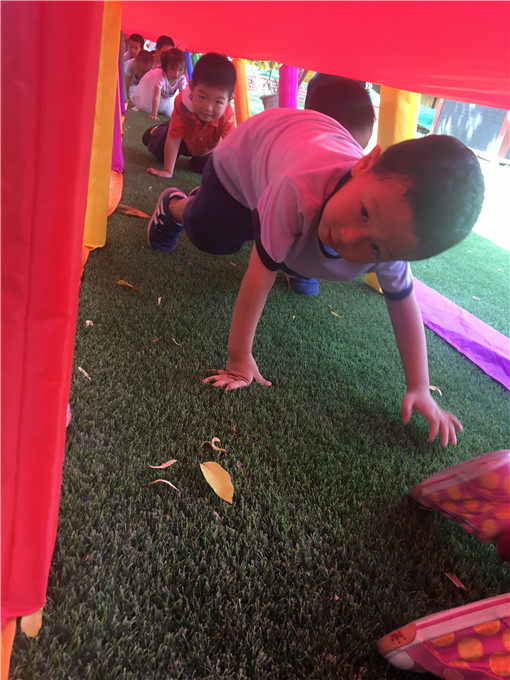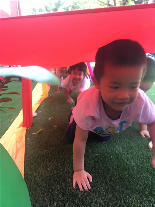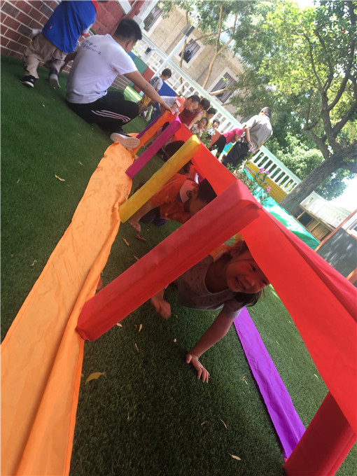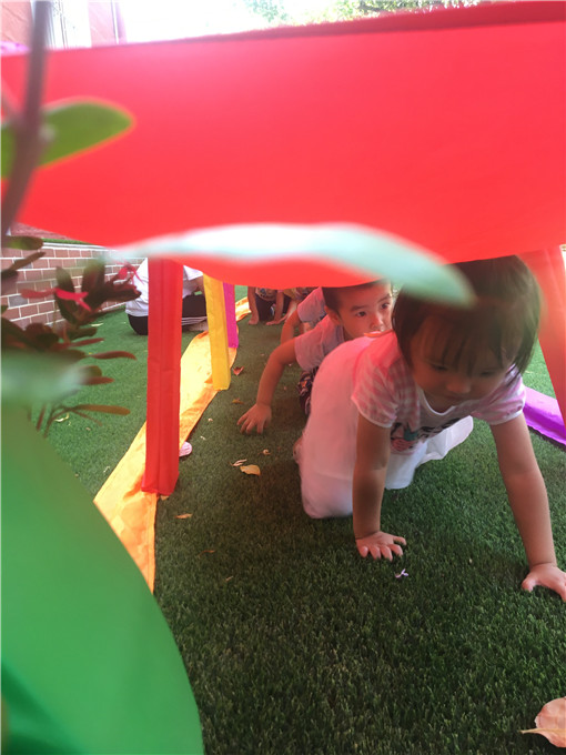 小可爱们化身“小蚂蚁”在“彩虹隧道”里快乐活动。