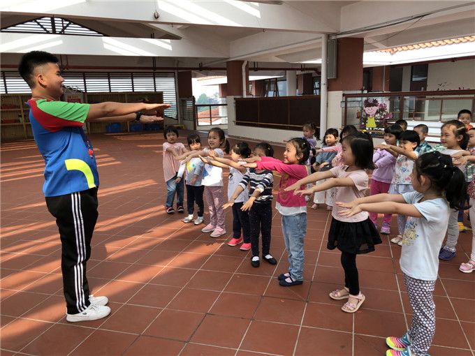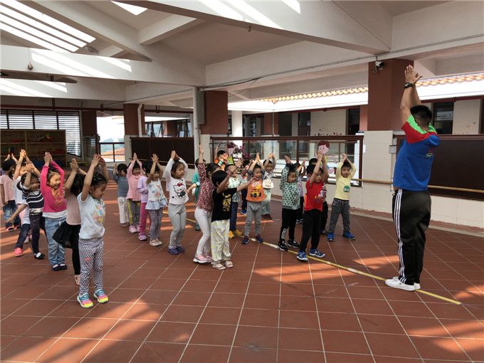 哇哦!宝贝们跟着小虎哥哥动感的音乐开始了今天游戏前的热身运动。