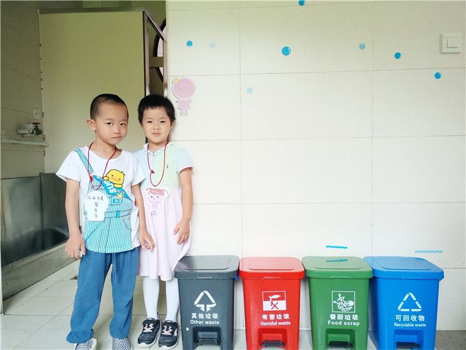 这一天,班级迎来了四位熟悉的新朋友,知道是谁吗?哈哈……没错,就是垃圾分类的垃圾桶!