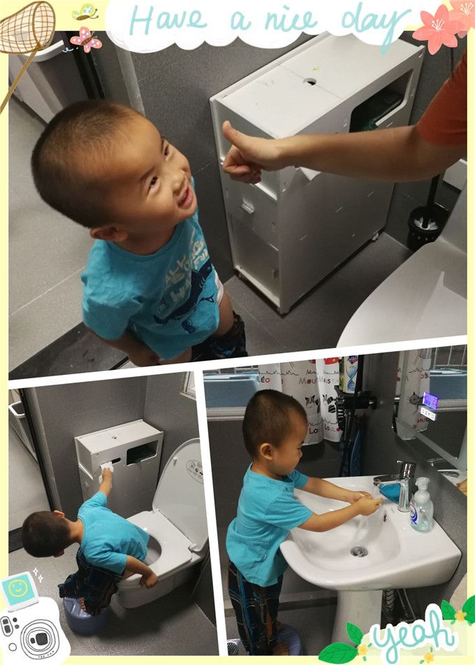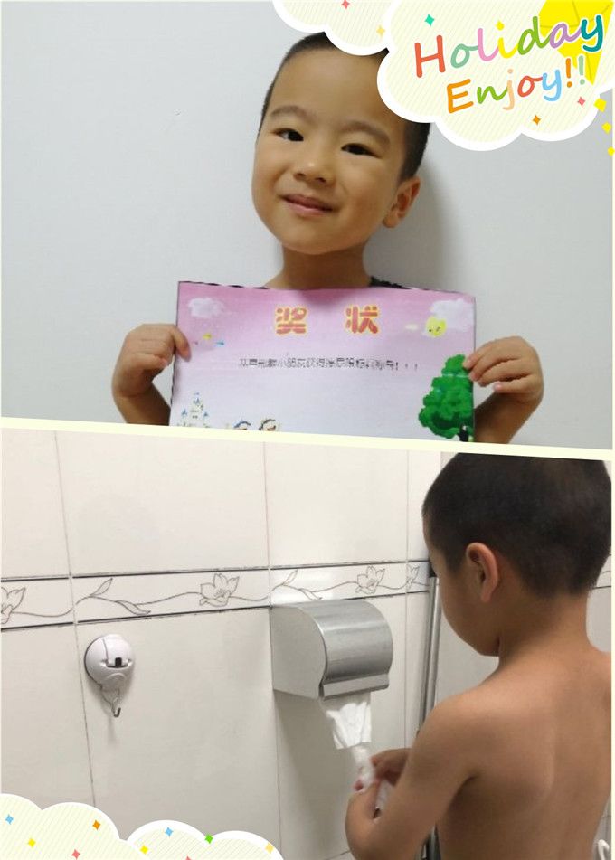 萌宝们认真仔细地帮气球宝宝擦了屁屁,要是给自己擦屁屁,是否也能成功呢?回到家里,几位能干的萌宝不再需要爸爸妈妈的催促,开始独自入厕啦。先将纸巾对对折,入厕后,懂得将屁屁撅高了再动手试着擦干净。最后,还不忘认真地洗手,做一个讲卫生的好宝宝。爸爸妈妈直夸萌宝棒棒哒!还给萌宝颁发了“小能手”的奖状呢。