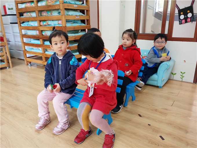 原来呀,他们正在等候区安静的等待“护士姐姐”叫号看病呢!