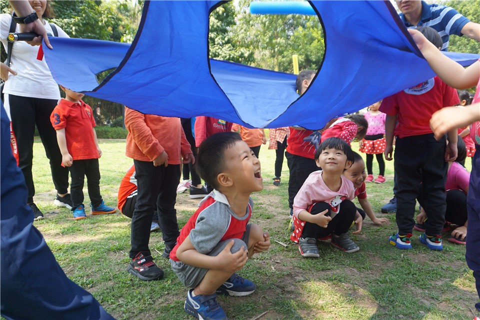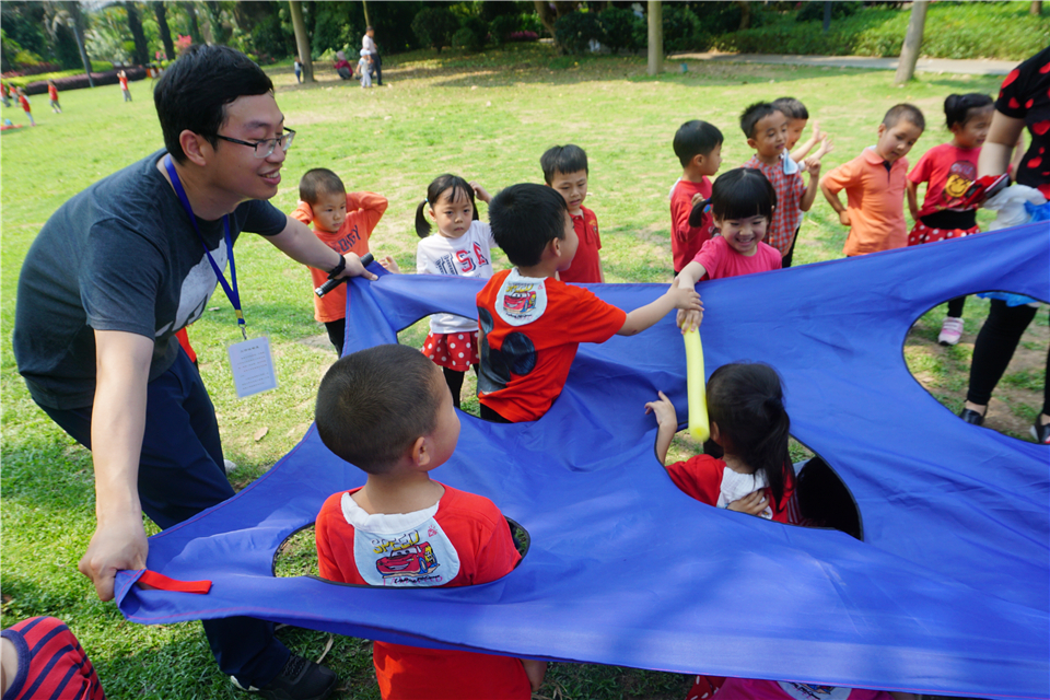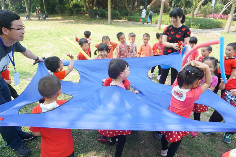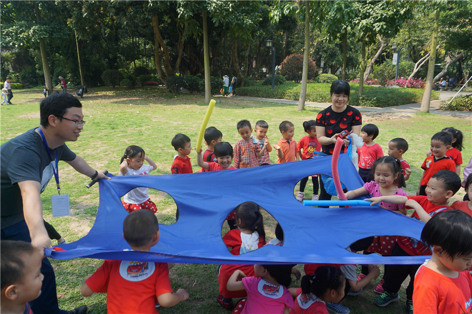 大草坪当然是宝贝们游戏的天堂,当志愿者爸爸撑开“打地鼠”游戏专用布,宝贝们立刻乐开了花,三五成群,有的当起小地鼠,有的“抡起”海绵棒准备“开打”。