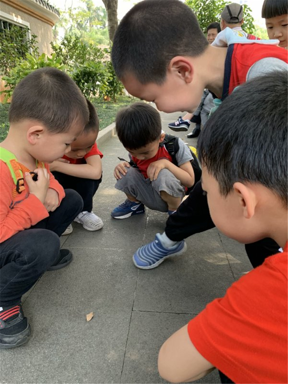 “哇,快看,那里有好多奶奶在跳舞。”“那边还有很多爷爷在下棋呢。”公园里的一切,就连地上蹦跶的小昆虫都吸引着宝贝们好奇的小眼睛。
