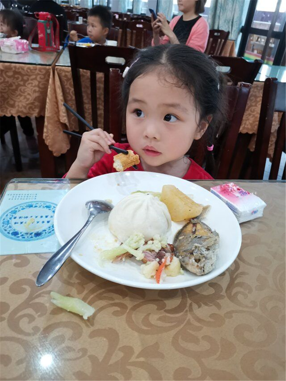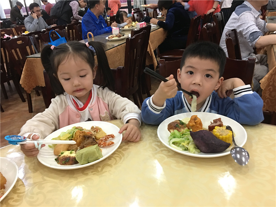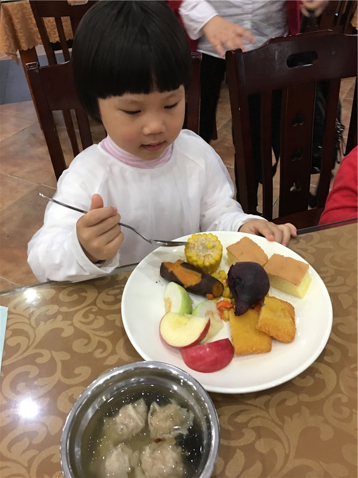 孩子们端着自己的食物,和好朋友坐在一起开始享受美食啦!“看!我会用筷子哦!”小一班高手如云啊!不一会儿,孩子们就安静地把盘子里的食物都吃完了,一点都没有浪费呢,我们为孩子们点个赞吧!
