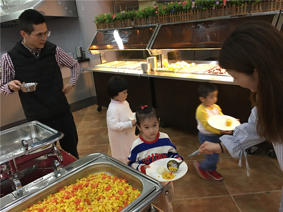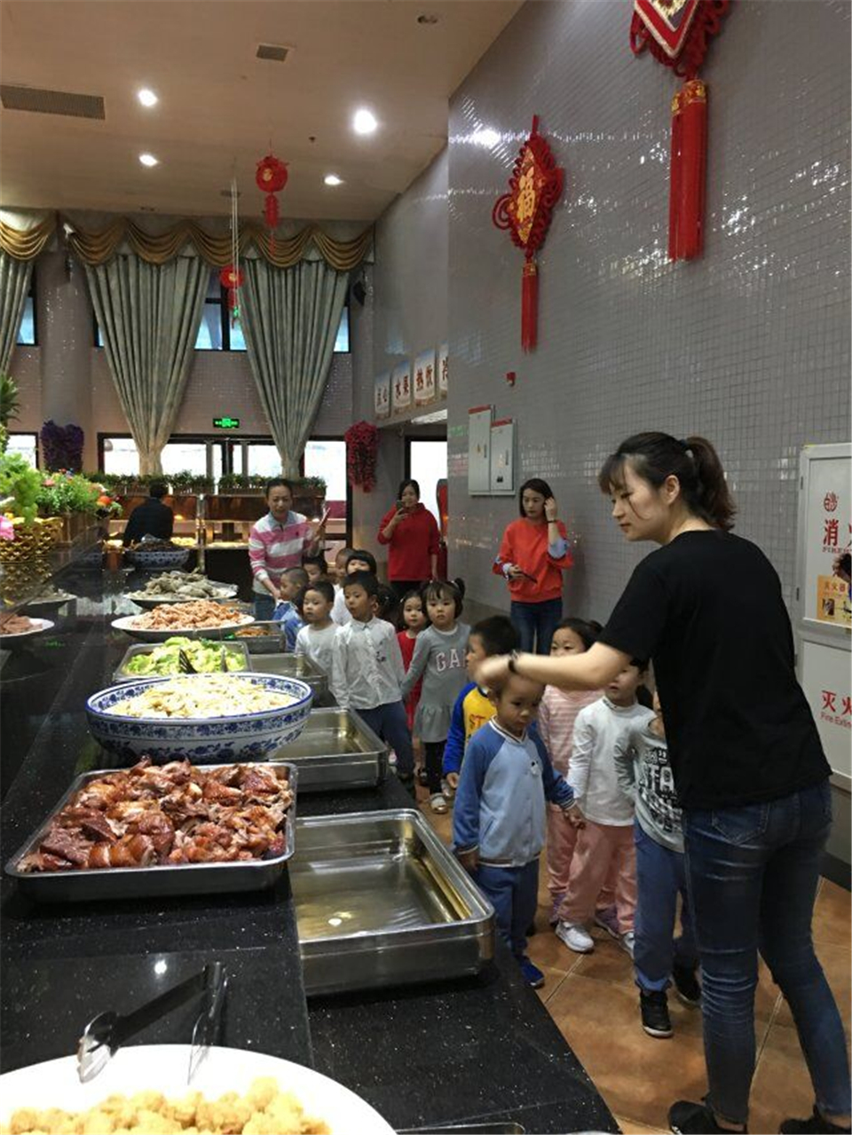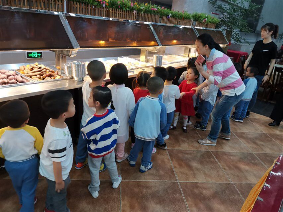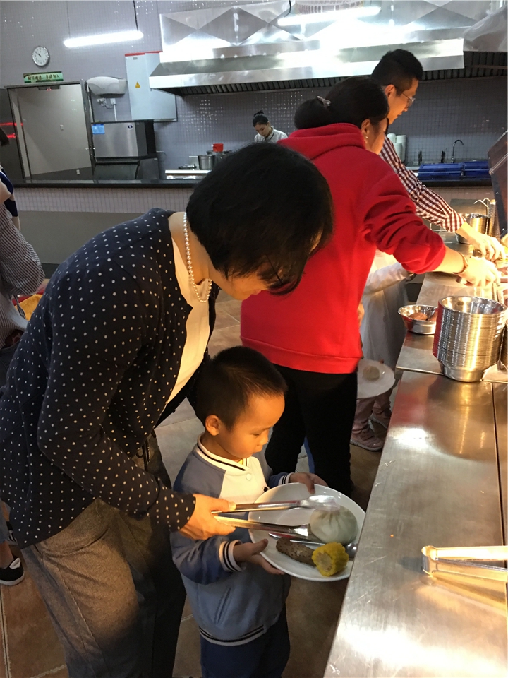 激动人心的时刻终于来到了!领取餐具,开始挑选自己喜欢吃的食物啦,好开心哦!“我想吃油条。”“我想喝可乐。”“我想......”每个小朋友的餐盘都装的满满的!