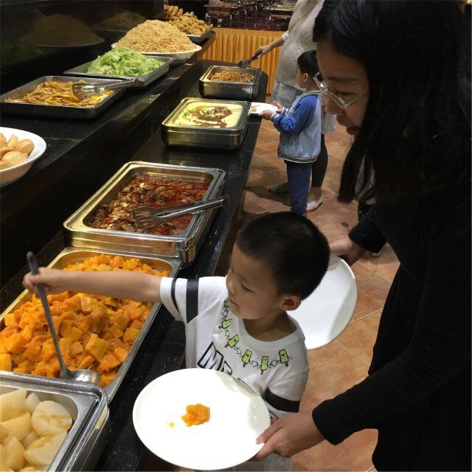 整齐的餐桌,有序的座椅,这样的环境看起来就觉得很舒适。终于来到了餐台前面,小朋友们在老师的带领下,认真的看一看今天的勤业餐厅都准备了哪些好吃的呢?哇哦!饮料区有可乐,雪碧,咖啡......主食有炒饭,炒面,白米饭,玉米,地瓜......还有丸子汤,鸭肉汤......太多好吃的了,口水都要流下来啦!