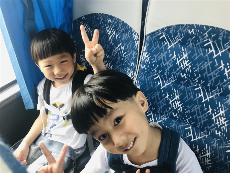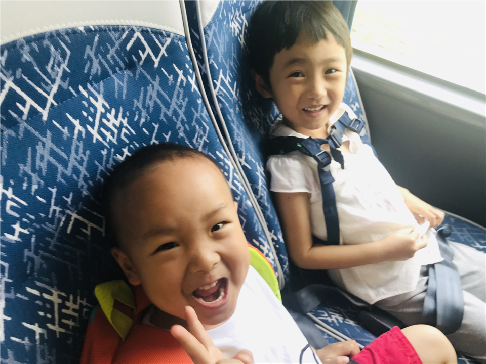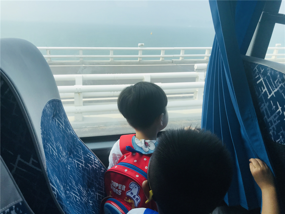 准备出发啦!和伙伴们坐上心爱的大巴车,看着窗外的美景,小朋友兴奋地说道:“我们在演武大桥上啦!看,大海好漂亮呀!”大巴车上满是孩子们的欢歌笑语。