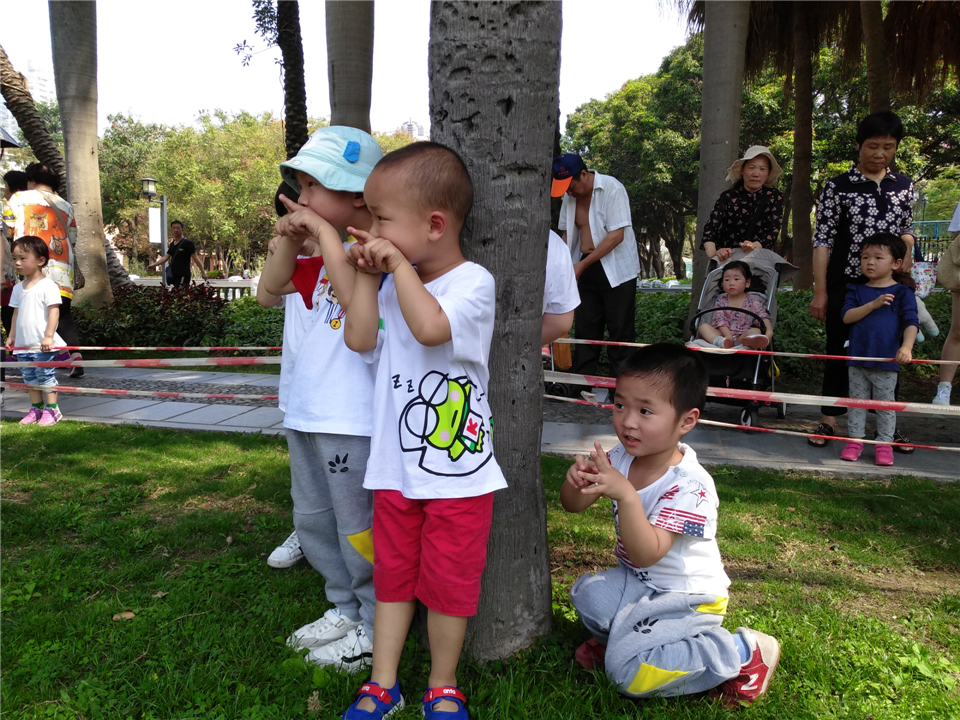 走过纪念碑,跨过东辰桥,只听见前方传来悠扬的歌声,原来是爷爷奶奶们在公园里举行歌唱比赛呢!伴随着歌声行走在中山公园里,眼前是一幅幅如画的风景,小朋友们忍不住这里瞧瞧那里看看,闻闻路边的小花,在大树底下做好玩的游戏。