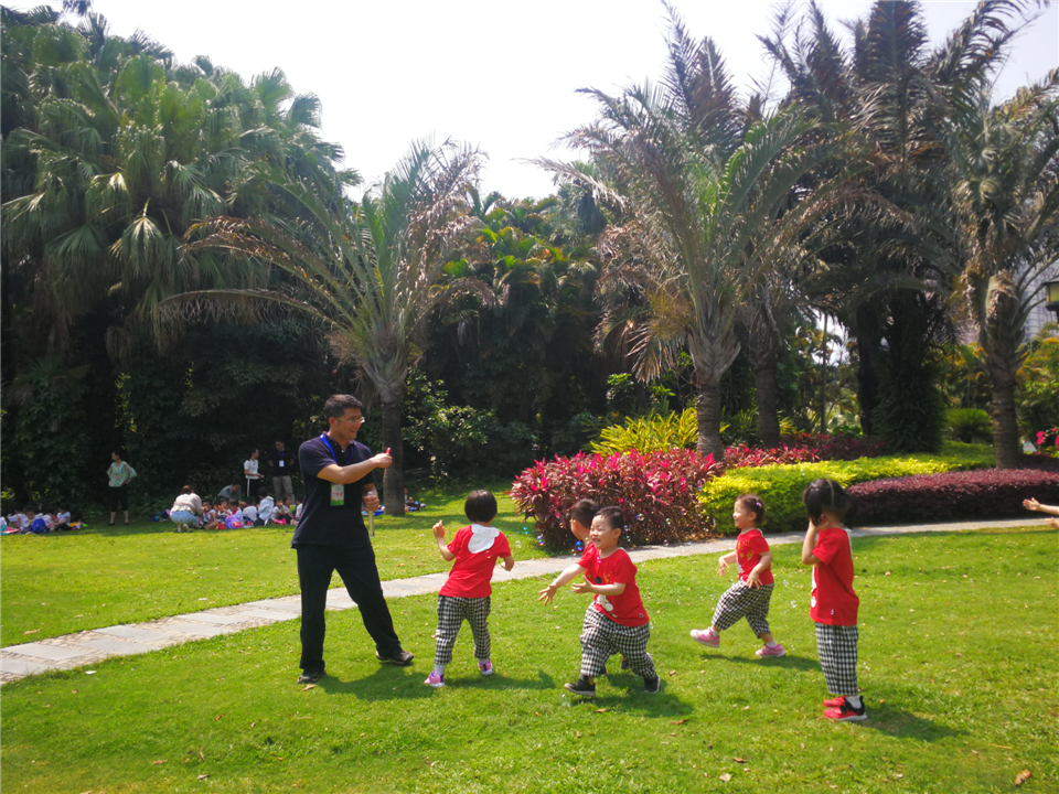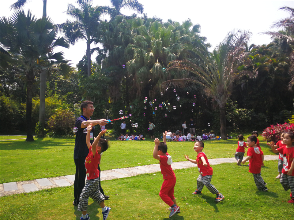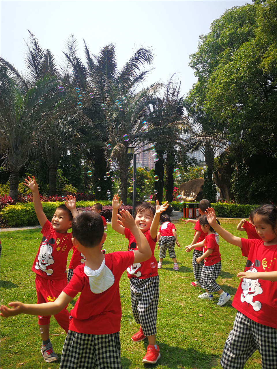 瞧!小一班的孩子们快乐的和风儿做游戏,挥舞着泡泡水,让泡泡随着风儿飘向天空和远方,他们追逐着,嬉笑着,打闹着……像一个个快乐的小精灵,无忧无虑……