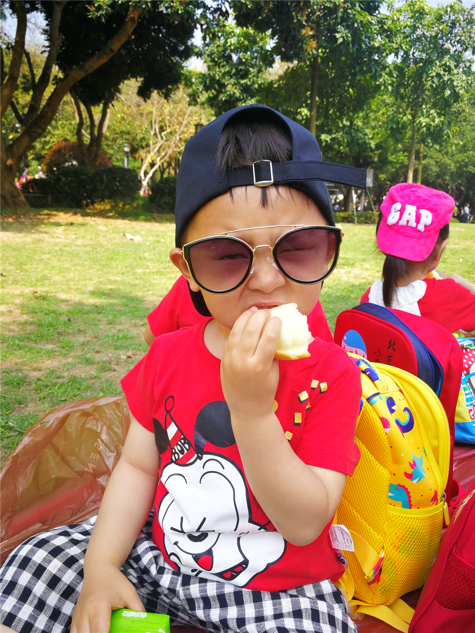 伴着和煦的春风,一路上孩子们有说有笑,不知不觉就到达了目的地,春游开始啦!我们先来拍一张集体照吧!卡,卡,卡……