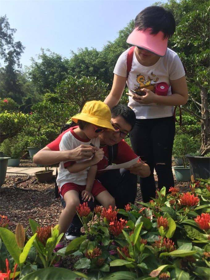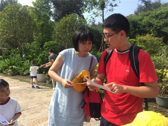 瞧!小朋友们在爸爸妈妈的带领下,一场寻花之旅开始咯!大朋友们各显神通,带着孩子根据任务卡上花儿的残缺部分去寻找花儿,并寻找相关的资料,找答案。