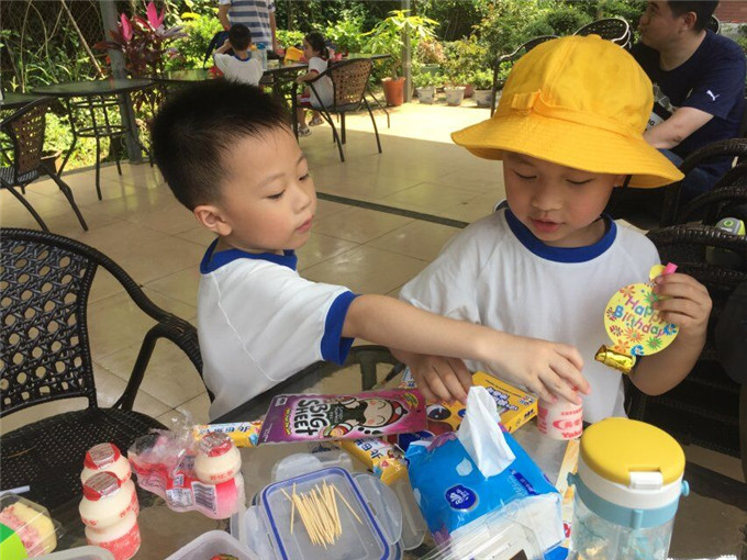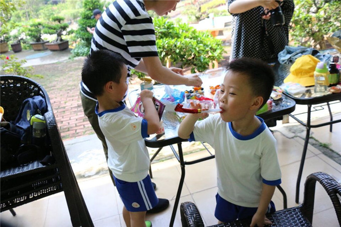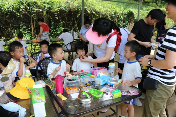 芳香四溢的花朵在风中轻轻摇曳,映衬着孩子们张张可爱的笑脸。在花儿的世界里,孩子们带着美美的心情,相互分享着各自带来的点心,幸福的笑脸,如花儿般灿烂。