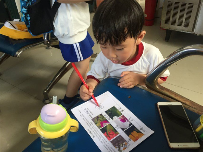 孩子们用彩色的画笔记录着自己的收获,把花儿的名字和样子统统都记录下来啦。