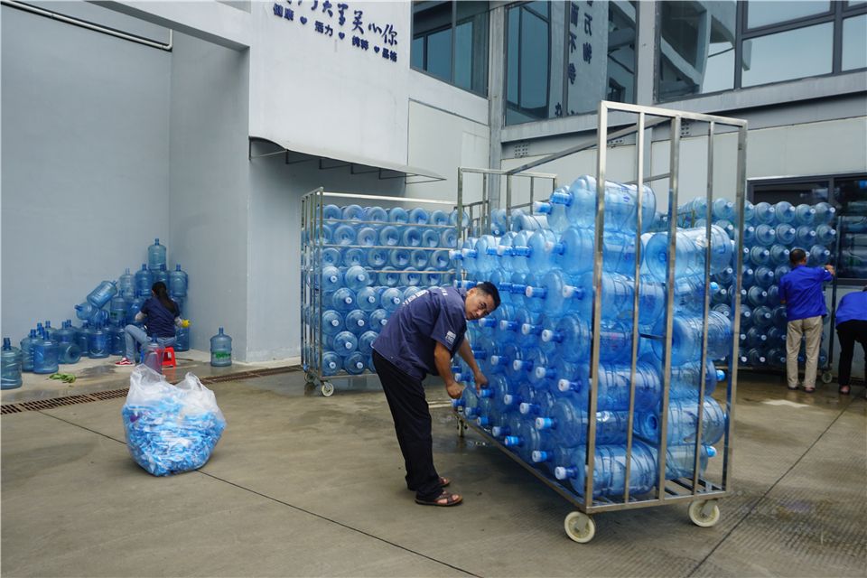 沿着廊道从二楼到一楼,宝贝们浏览了一番矿泉水瓶从小瓶的制作到桶装的清洗整理,吸引了宝贝们好奇又炙热的目光。
