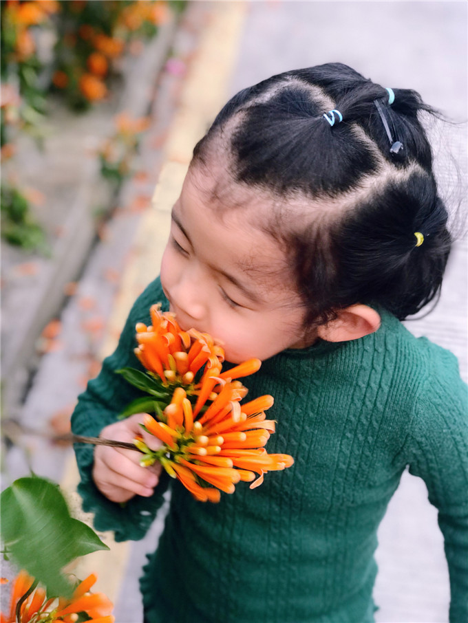 “这是我找到的‘春姑娘’,她的名字叫炮仗花。她的裙子好美啊。”