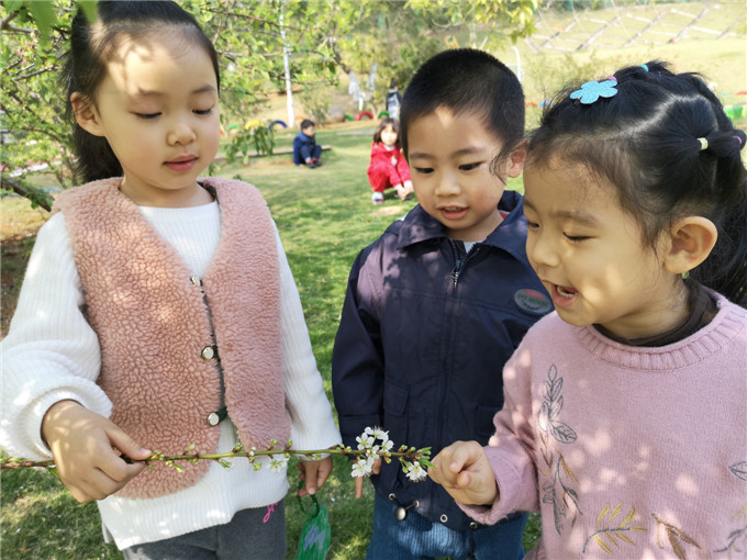 春天悄然而至,伴随着鸟儿 “叽叽叽……”的歌声,放眼望去,满园的春意盎然,幼儿园山坡上漫山遍野 “春”的气息,花儿们正争奇斗艳的迎春绽放,婀娜多姿的跳着春天的芭蕾。这春天的景象在宝贝们的眼里,也是大自然赐予他们最美的一道风景。趁着春意正浓,小四班的宝贝们开始寻找春天的足迹,一起去感受春天的美!
