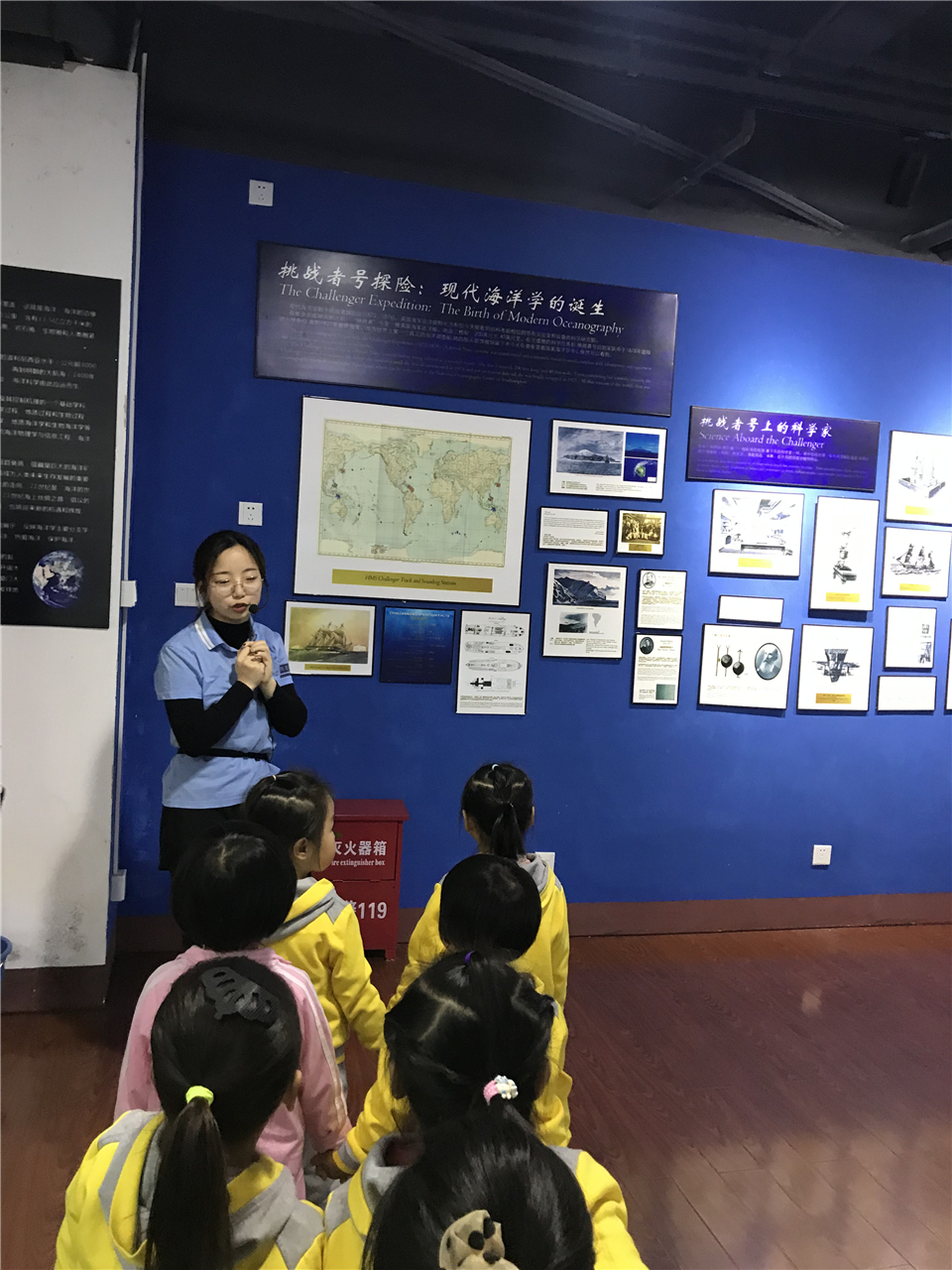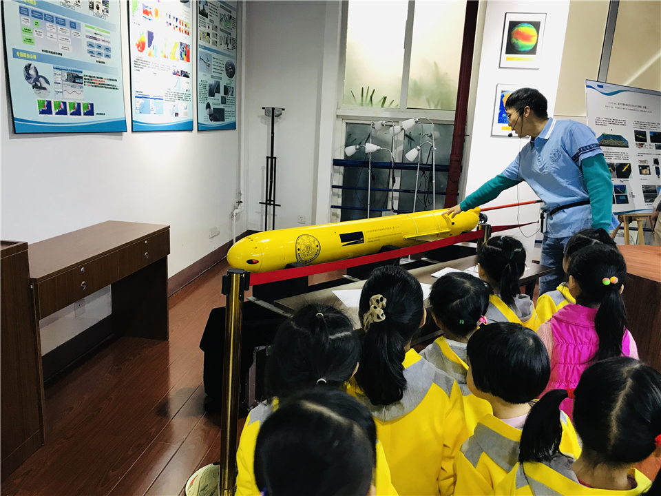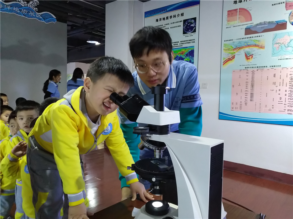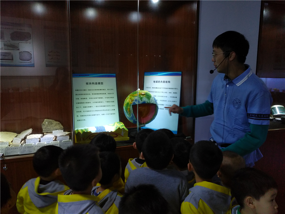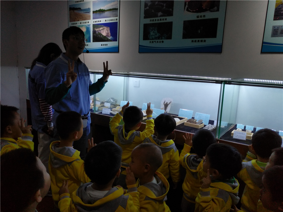 之后,大家来到了最后一个展区——海洋地质展区。为了更好地让宝贝们理解,讲解员可是使出了浑身解数。一起去看看宝贝们的认真样儿吧!