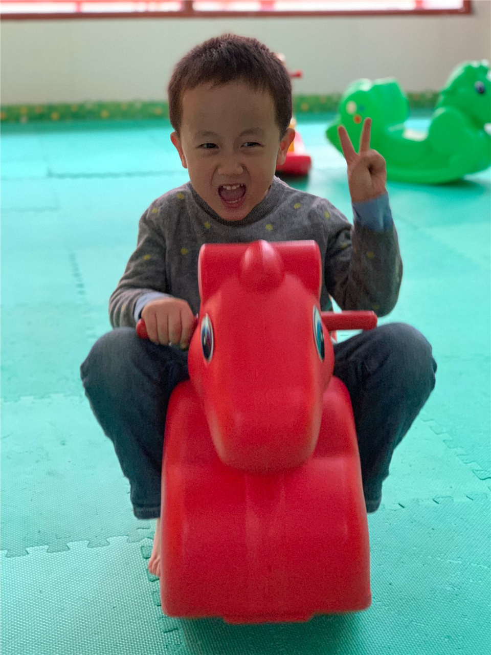 原来,淘气堡里也有摇摇马呀!真是太棒啦!