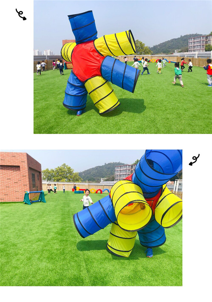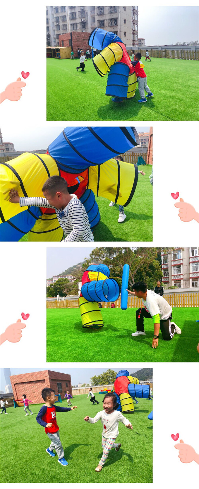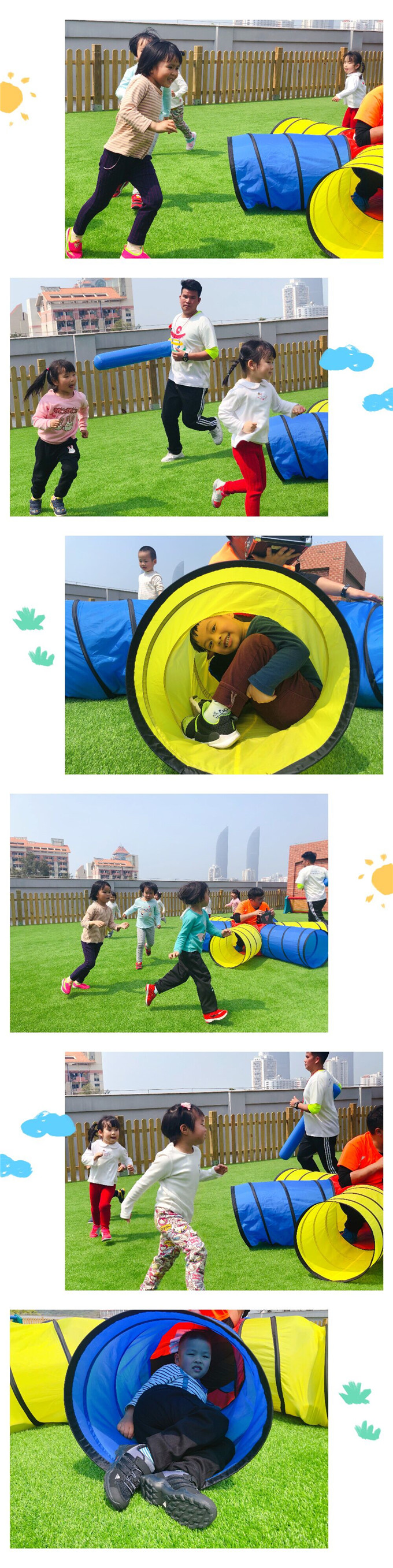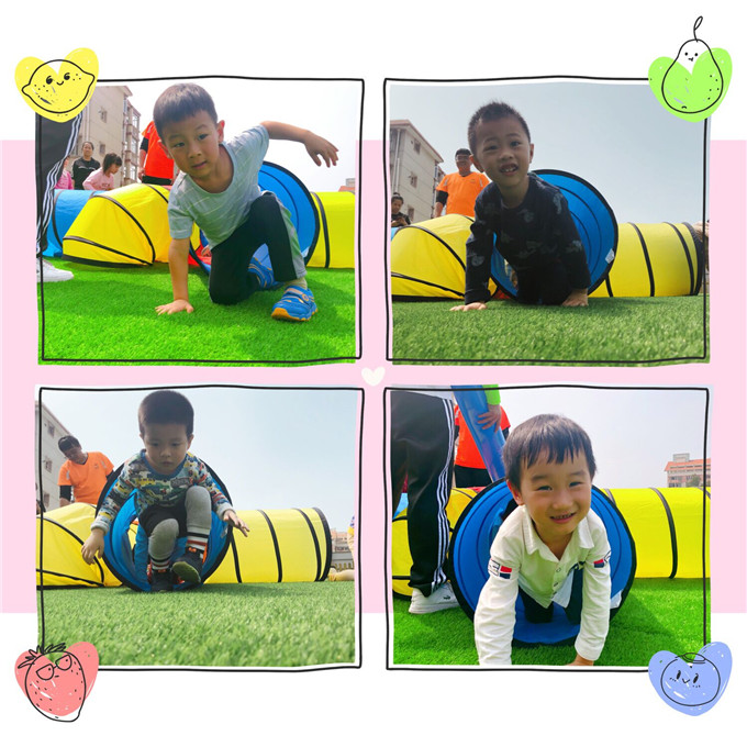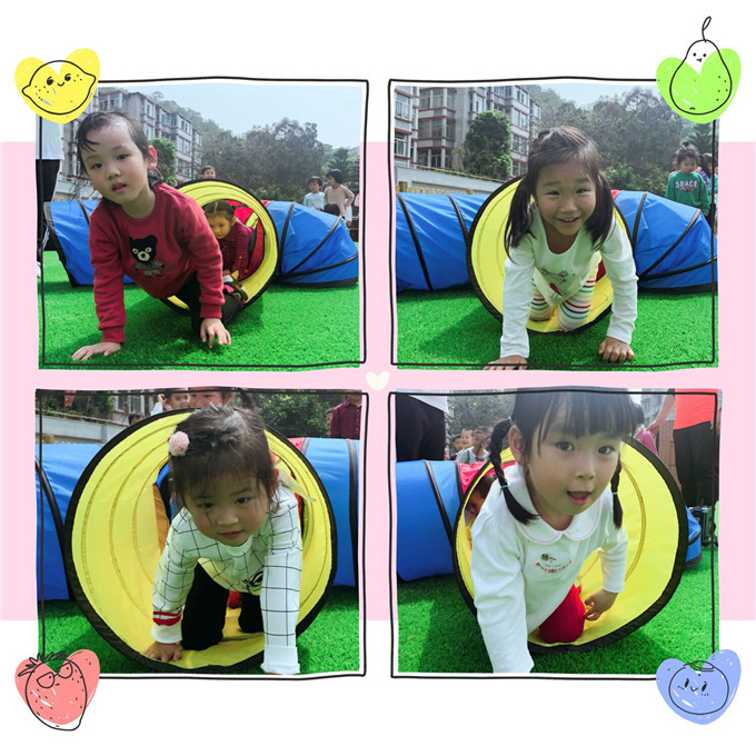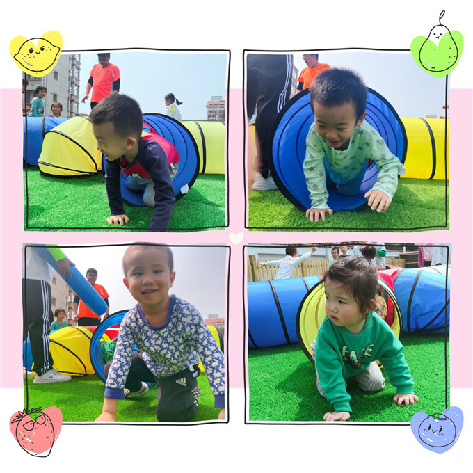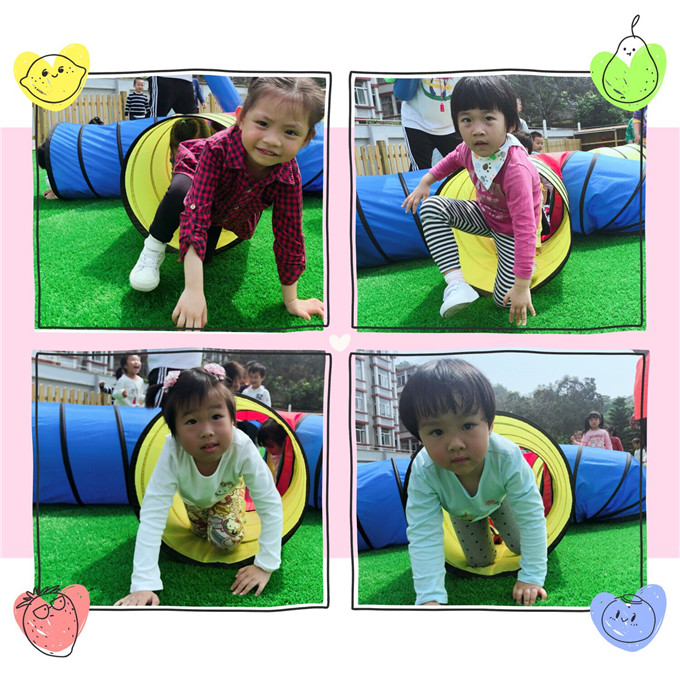“男生钻蓝色洞洞,女生钻黄色洞洞哦,可不要钻错喽。”