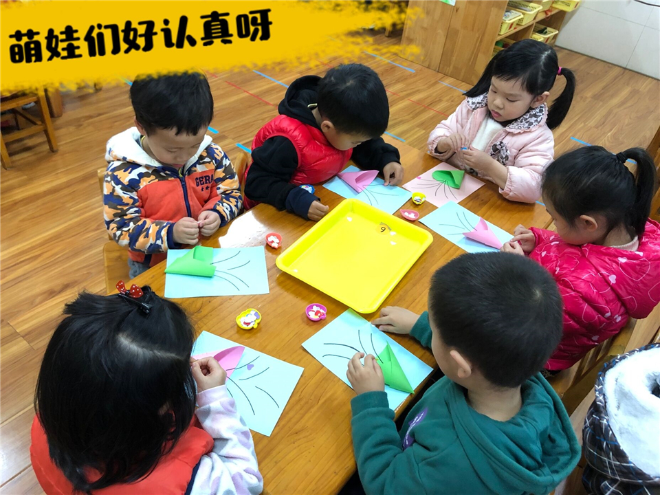 嘘!心灵手巧的萌娃们正在用自己的小小手制作美丽的爱心贺卡,真棒!