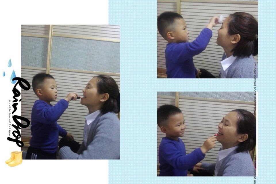 原来宝贝们是在给妈妈们涂口红呢!哈哈哈哈,妈妈们真的是太有勇气啦!不过宝贝们画的还是挺好的,看的老师都想让宝贝们给自己涂一次口红呢!