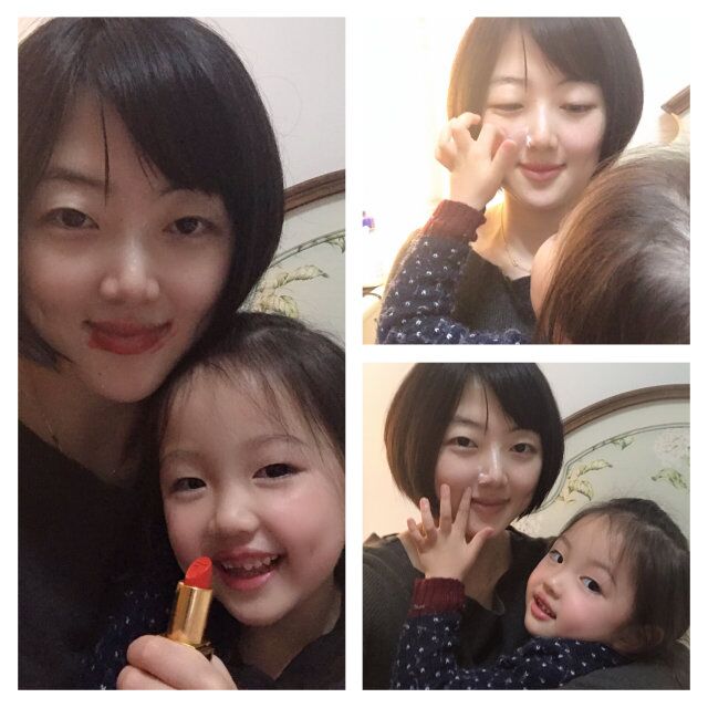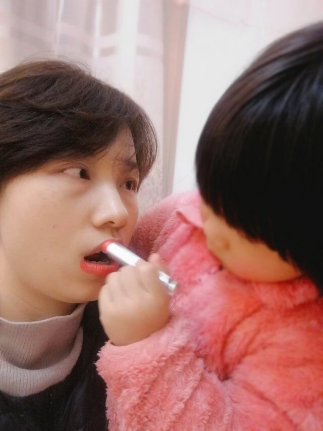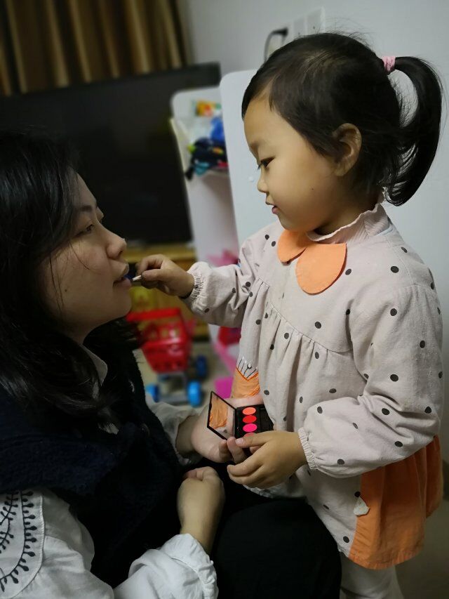 当然啦!给妈妈涂口红才是一部分呢,还要画上漂亮的眉毛。