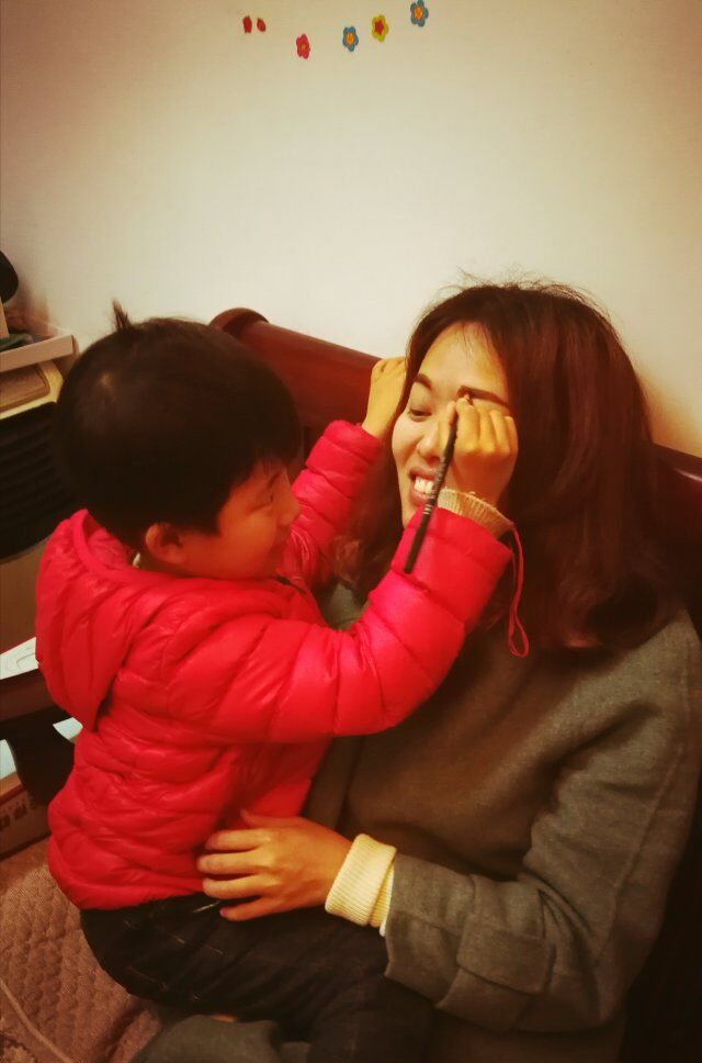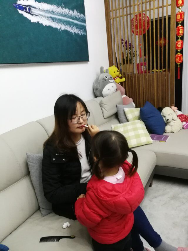 “宝贝,你要轻一点画哦,画的太黑了就不好看了!”看样子妈妈们还是挺担心的。还有的宝贝们给妈妈洗头发,梳头发,涂面霜,擦粉……此时,在妈妈们的眼中,孩子们就是这世界上最好的“化妆师。”同样,在孩子们的心中,妈妈也是最美的人。