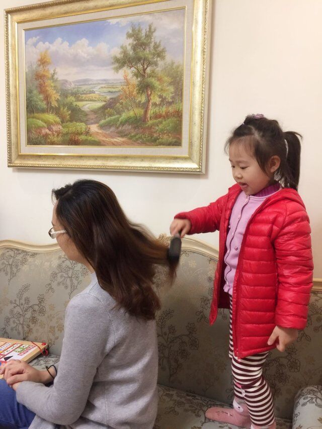 “妈妈,你千万不要动哦,不然就画不好了!”