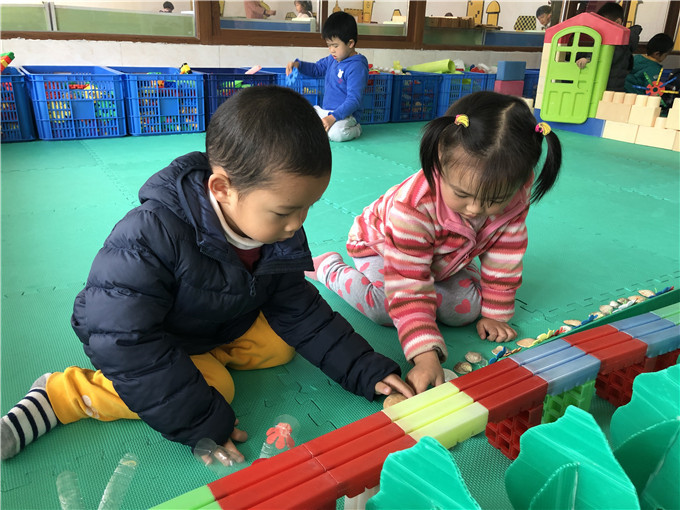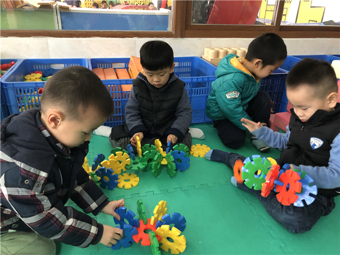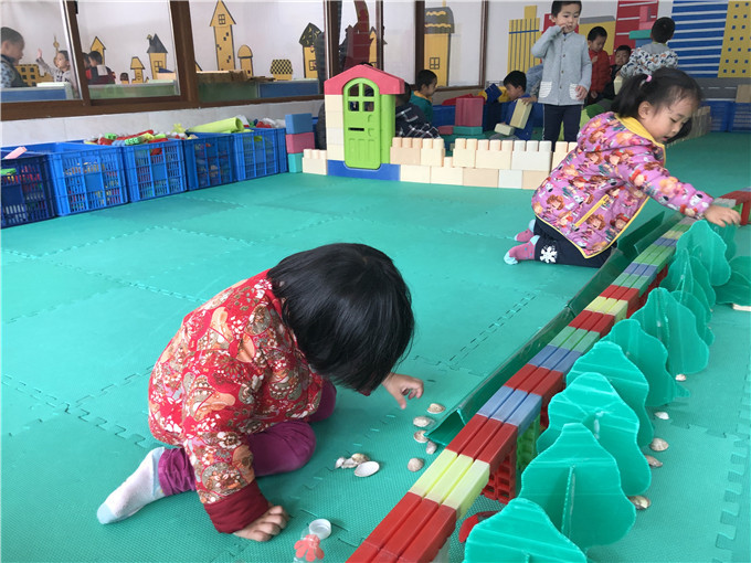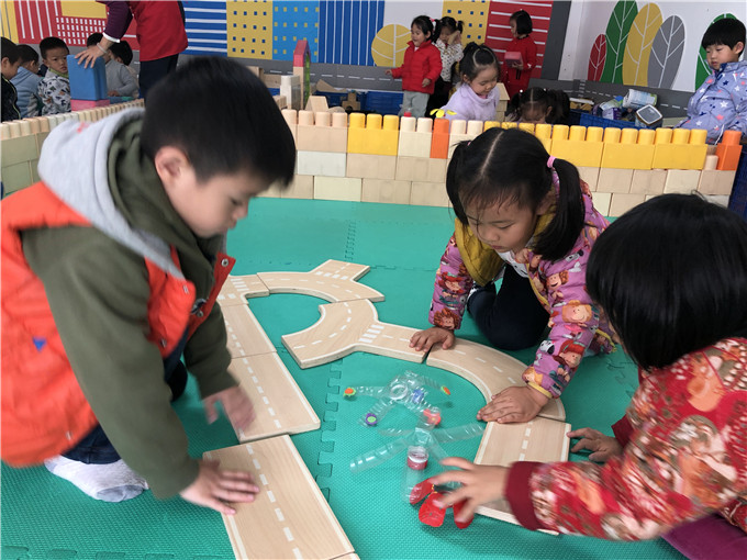 每个小朋友都在自己搭建的乐园里玩得不亦乐乎,非常投入,红扑扑的小脸上洋溢着由衷的笑容!