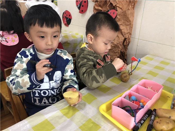 创造来源于生活,取材于生活。每个孩子的想象和创造都具有无限的可能。宝贝们通过对自然物的探索,结合不同的手法,把一颗颗小小的土豆,创作出别具一格的独特造型,也给宝贝们带来极大的惊喜,敬请期待我们更加出色的表现吧!