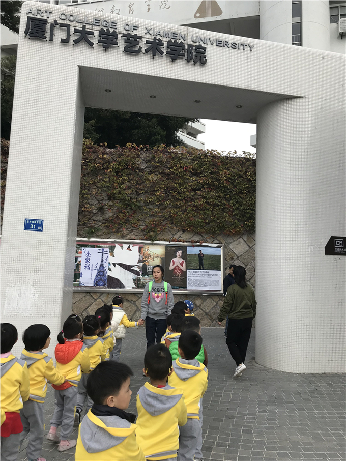 在志愿者爸爸和老师们的保驾护航下,我们兴高采烈地出发了。一路上充满了我们的欢声笑语,转眼间就到了艺术学院门口。