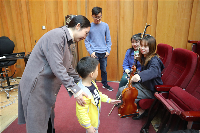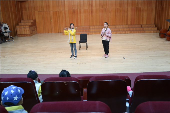 哥哥姐姐还分别为我们用琵琶、二胡、单簧管以及笛子单独演奏了不同的曲子,伙伴们完全陶醉其中、意犹未尽。