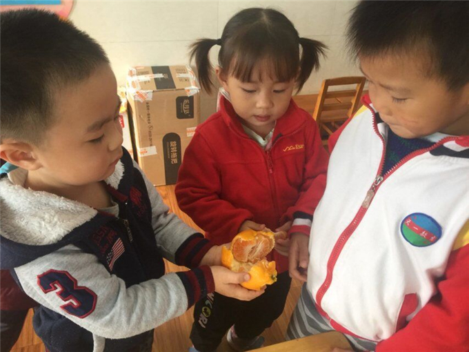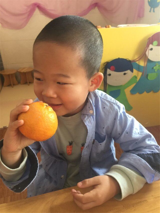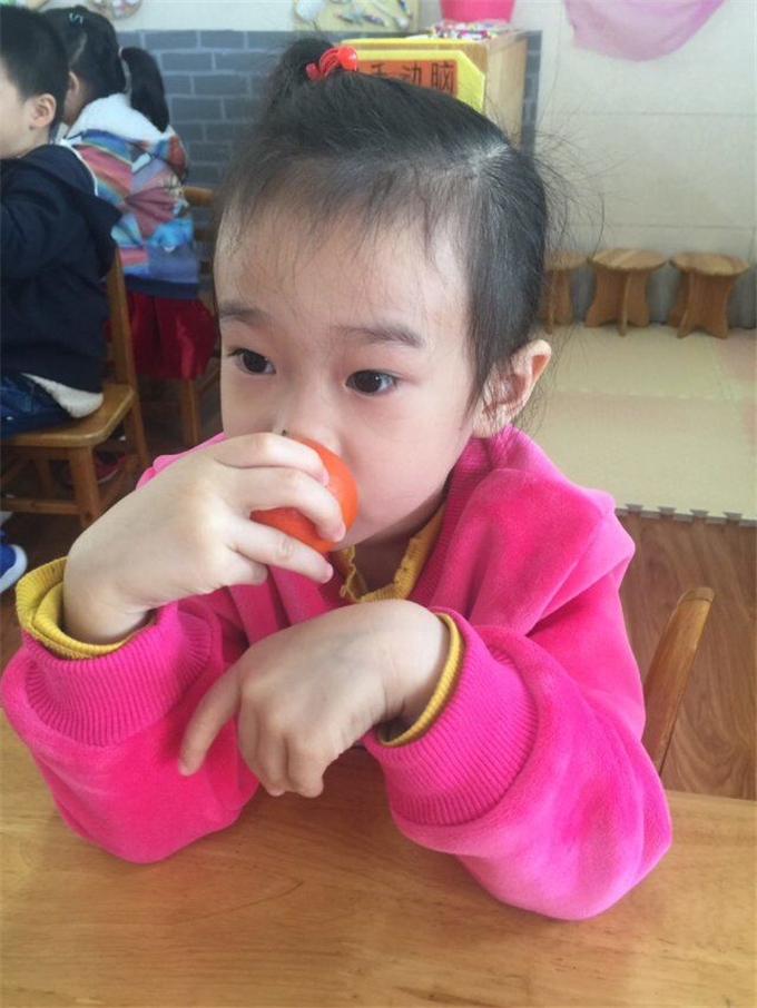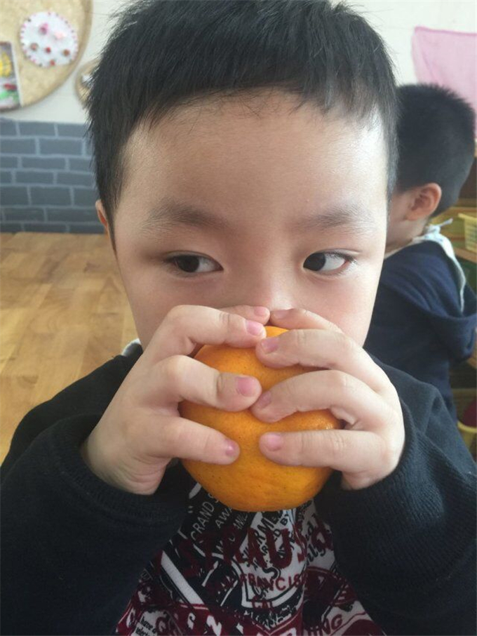 孩子们都用力地把橘子放在鼻子旁边闻了又闻,生怕错过一点点气味。