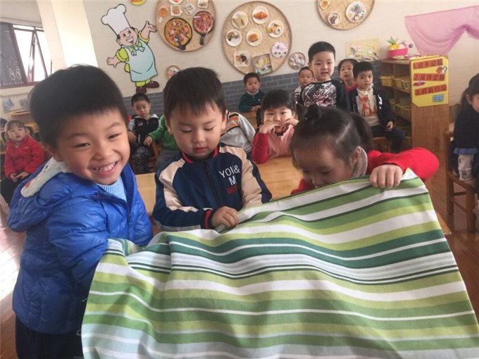 “这……是什么水果宝宝呢?”瞧,小一班的宝贝们正开动着小脑筋跟老师一块儿玩起了“布块”下的猜谜小游戏呢。