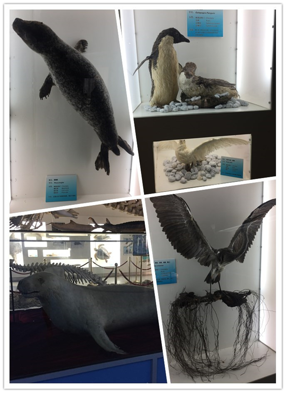 “哇!快看!这里有很多海底动物。”宝贝们已被展区里面丰富有趣的标本给吸引住啦!有宝贝们熟悉的企鹅、海怪、海龟,也有宝贝们没有听说过的翻车鱼,他的名字和样子一下逗笑了在场的参观者。