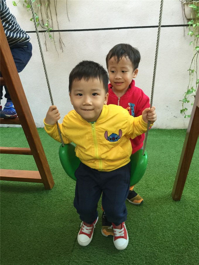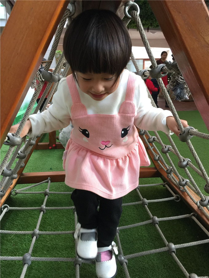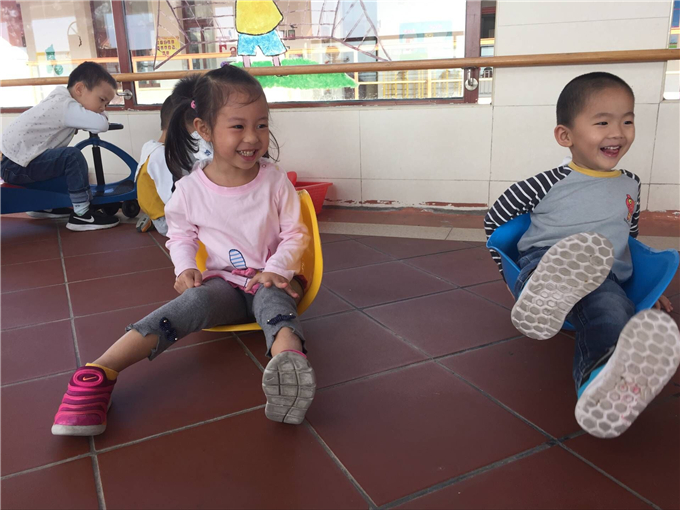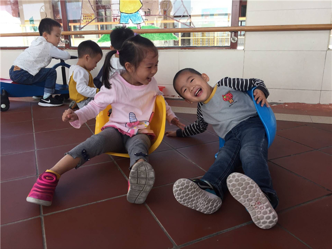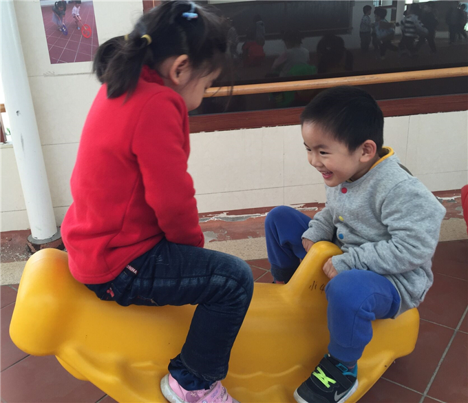“和最好的朋友一起玩跷跷板,心情美美的。”