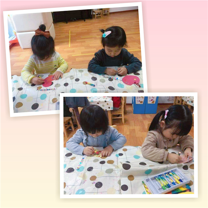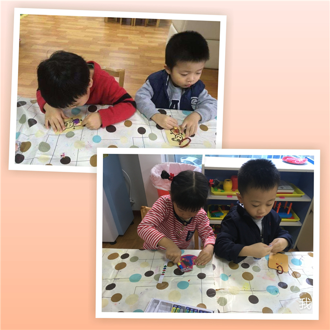 “我给小猪穿上新衣服,带它去过年”“我要画一张彩色贺卡,挂在新年许愿树上”“我还要画一张贺卡送我我妈妈”。瞧,萌娃们有的用彩笔涂色制作贺卡,有的用彩色贴纸装饰贺卡。