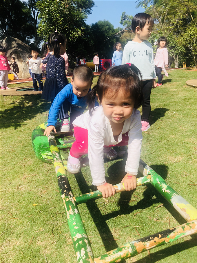 小二班小朋友们快乐的幼儿园生活已近一学期了。在幼儿园里,有一片阳光普照,生机勃勃的地方是小朋友们最喜欢的“游乐场”——小山坡,他们在这里玩耍、探险,HIGH翻啦!