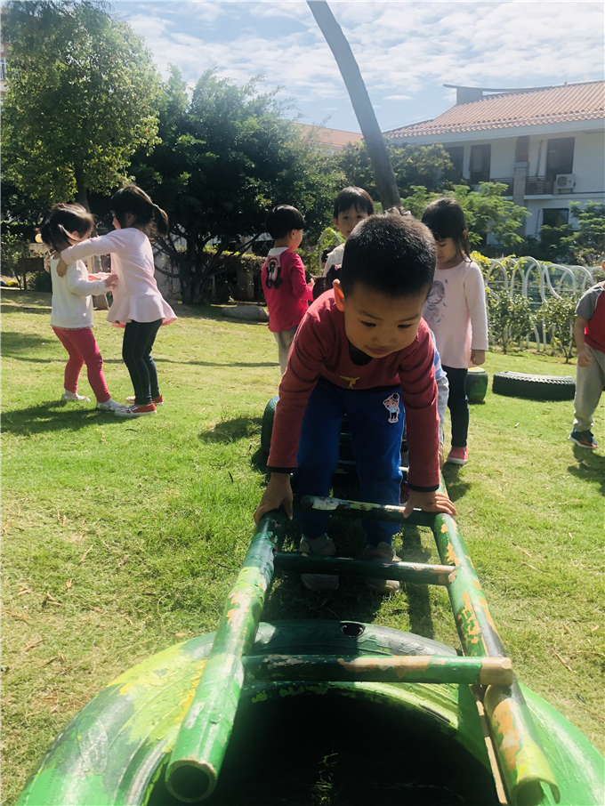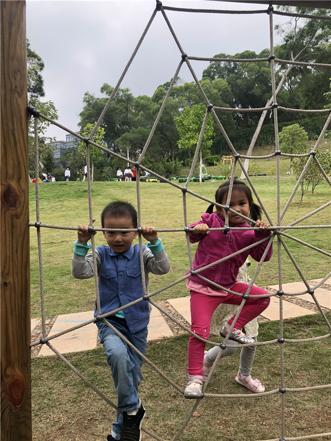 令人兴奋的不仅是简简单单的过“小河”哦,“小河”上还有巨大的“蜘蛛网”和攀爬绳,看来“小河”不是那么容易就过去了,还有许多难关呢。