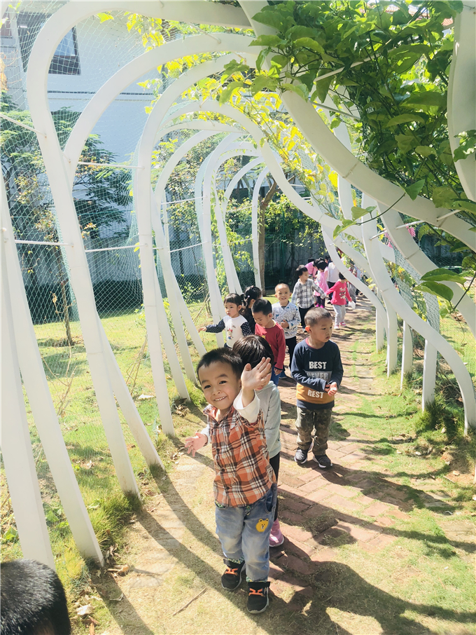 “火车嘟嘟嘟,开到哪里去,嘟嘟嘟,开到大峡谷……”伴随着熟悉的音乐,小二班小朋友搭起“火车长龙”,小山坡的迷宫宛如一个天然而神秘的火车轨道,一列列小火车在其间来回穿梭,怡然自在。