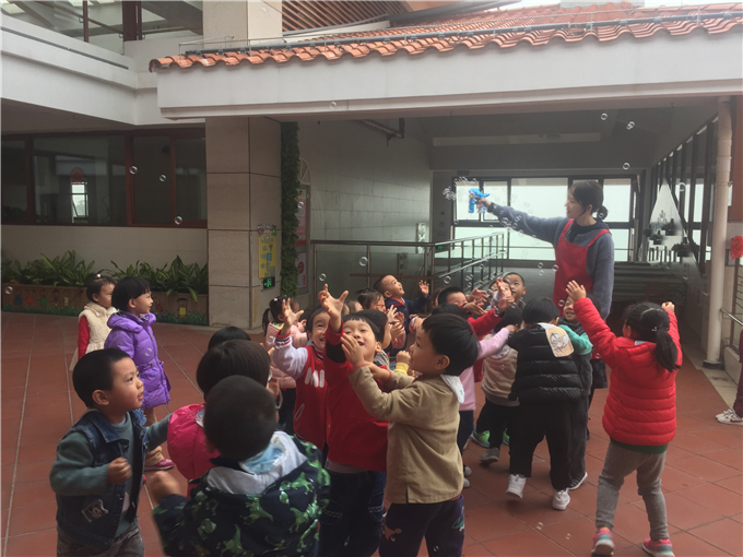 “吹泡泡,吹泡泡,一吹吹了个大泡泡!”吹泡泡是每个孩子都喜欢的一项游戏,它总能带给孩子们无限的欢乐,可是泡泡的生命是那么短暂,飞到空中就不见了。孩子们常说:“老师、老师,如果能留住泡泡五颜六色的影子,那该多好啊!”,怎么满足孩子们的心愿呢?这可难不倒我们聪明的老师哦。一场“泡泡大作战”开始啦!