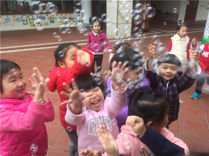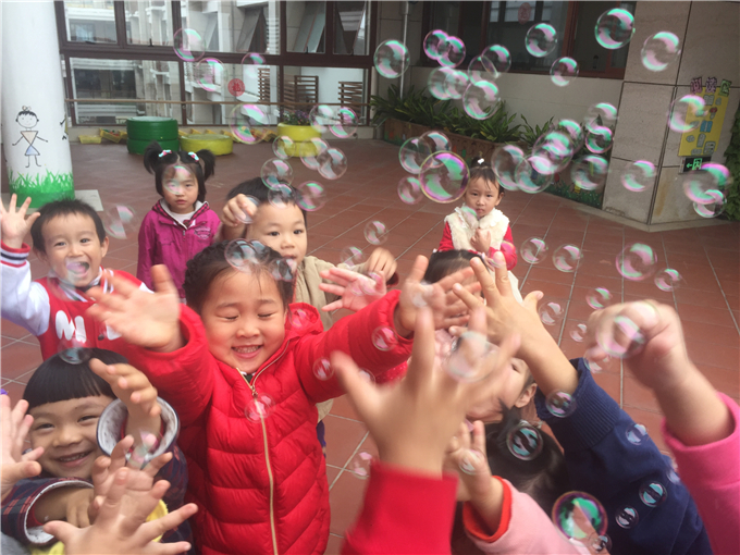 “我吹出了蓝色泡泡,哈哈……太好玩了!”