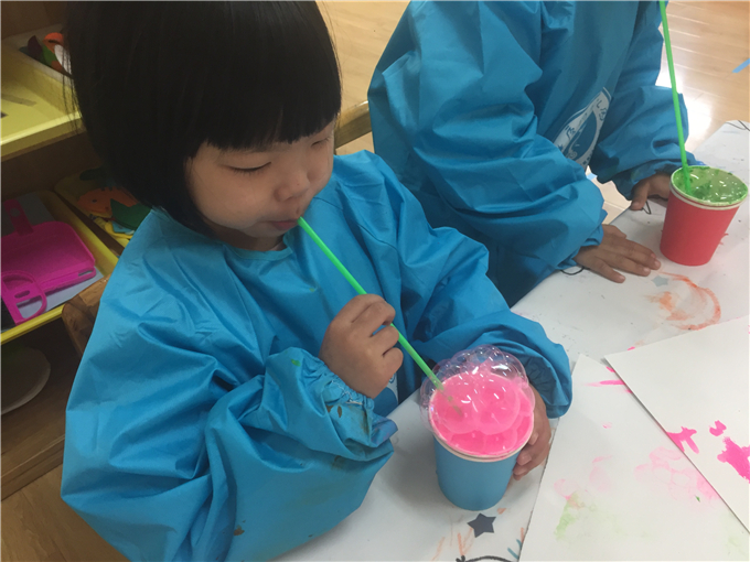 孩子们在亲身体验泡泡画创作的过程中,创造力、想象力和语言表达能力都有着很好的锻炼。亲身体验了泡泡画的神奇;体验了吹泡泡游戏和玩色游戏相结合美妙艺术创作的无穷乐趣!让我们一起期待下一次孩子们精彩的表现吧。