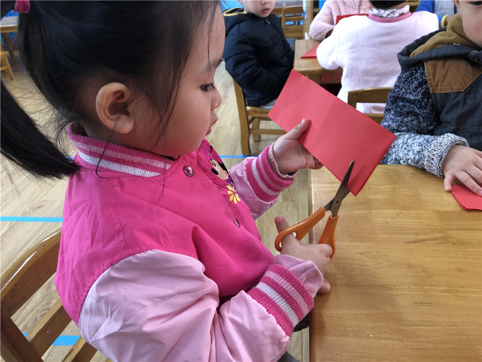 “你看,我没有剪断哦,我的灯笼一定会很漂亮!”