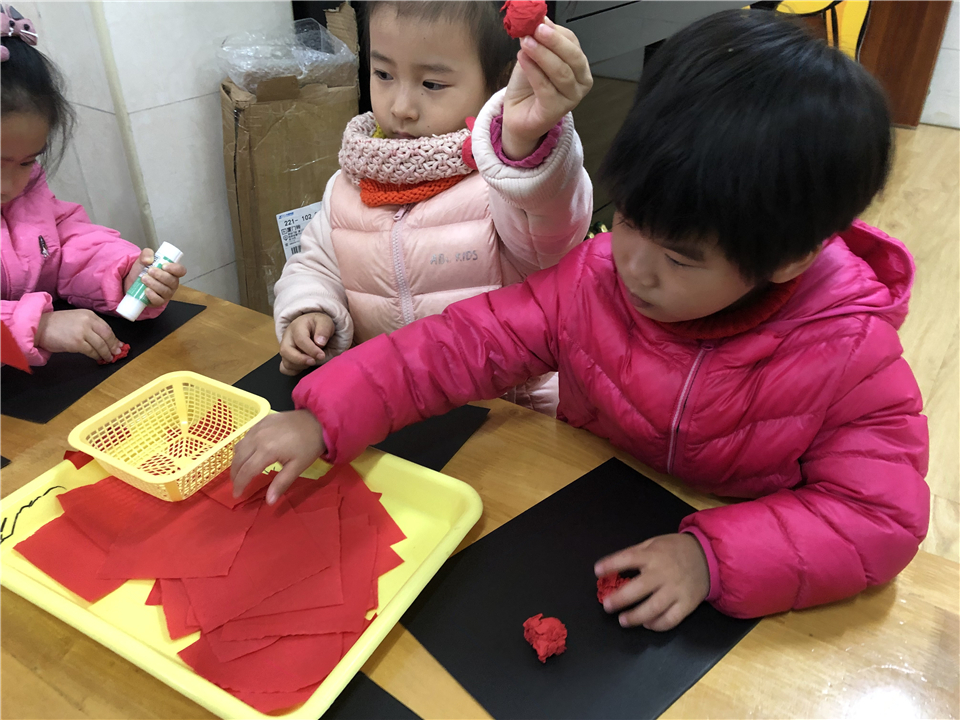 小三班的小朋友们在幼儿园的美工活动中充分的感受的到节日的喜悦气氛,用自己的方式来迎接这喜气的新年。新的一年就要来啦,小朋友们在新的一年还有许许多多的愿望,老师希望你们都能梦想成真,健康快乐的成长!