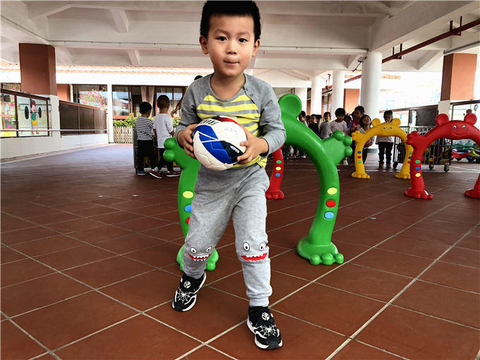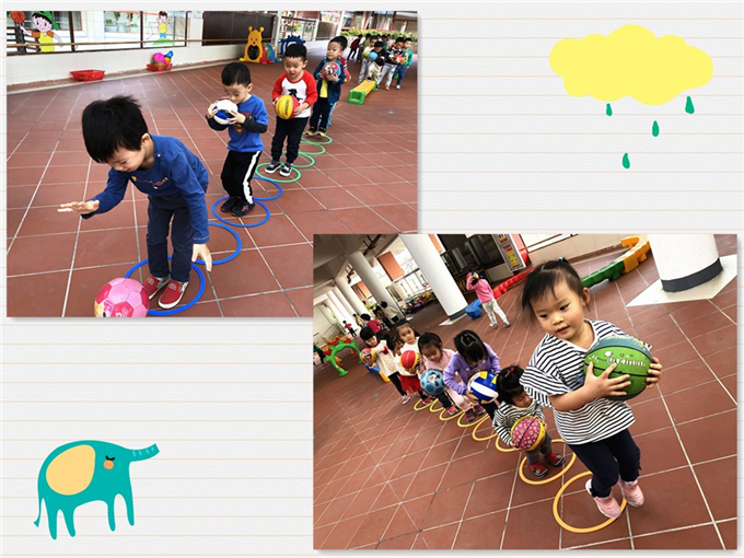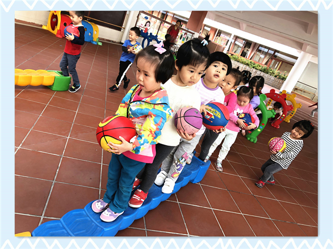 看,宝贝们都准备好了,他们以华丽变身,成为一名名厉害的“运球小能手”,在场地上快乐的驰骋着、奔跑着,将一个个小皮球顺利地运到目的地。