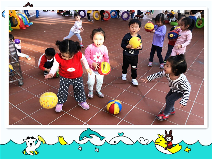 玩过了自由自在的拍皮球游戏后,今天宝贝们将面临一次别样的皮球游戏挑战哦!没错!那就是——花样行进运球!