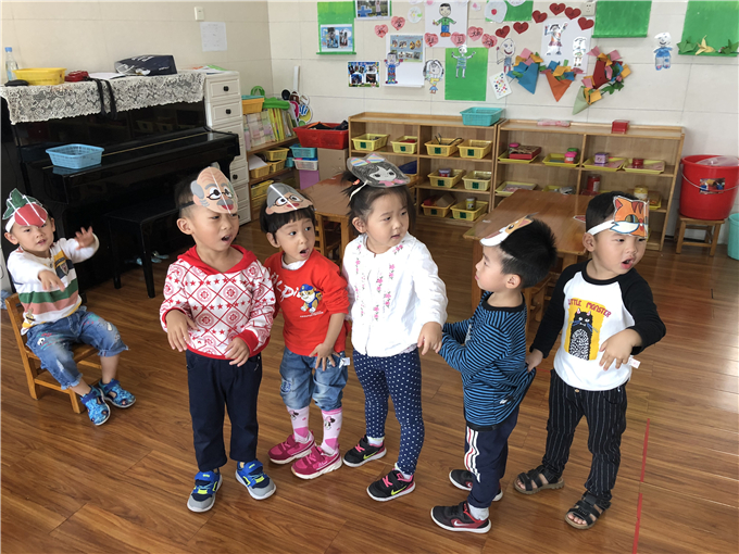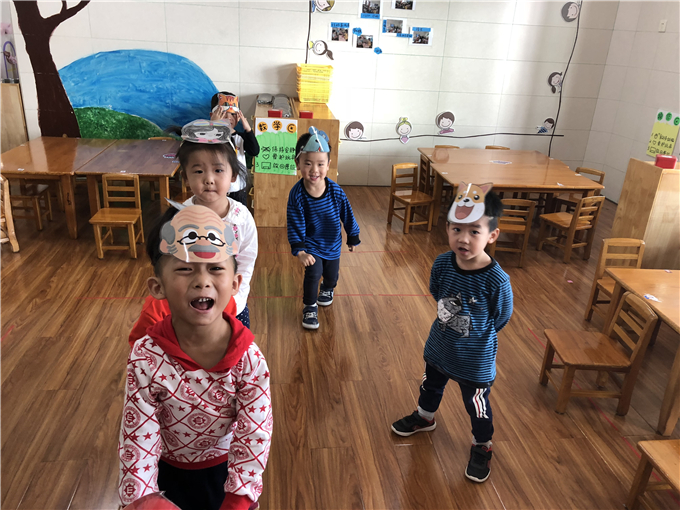 游戏开始了,宝贝们兴奋极了!个个把小手举得高高的,跃跃欲试,总想着要好好表现一番。虽然只有简单的头饰,但他们仍然玩出了游戏的精彩和有趣。