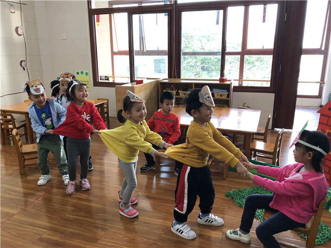《拔萝卜》是一个经典、古老的故事。故事情节简单,语言简明而又口语化,角色出场顺序又是幼儿比较熟悉的。这不,小六班的宝贝们又掀起一股玩表演游戏《拔萝卜》的热潮。