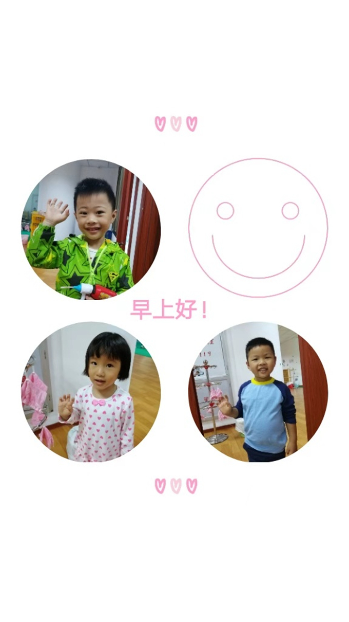 每天入园时,我懂得跟老师、小朋友们道声“早上好!”,美好的一天是从甜甜的问候开始滴唷!